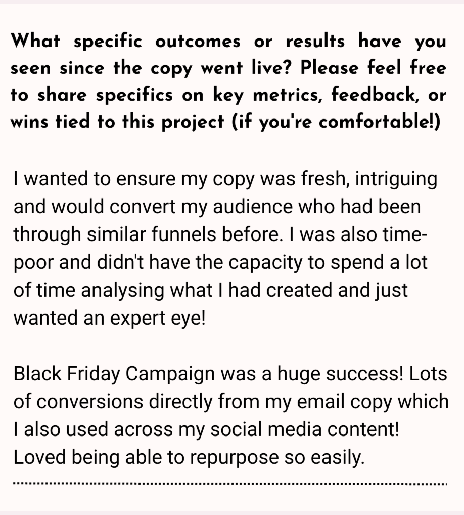 Brittany had one of her best Black Friday launches ever because she hired me to analyse a launch sequence